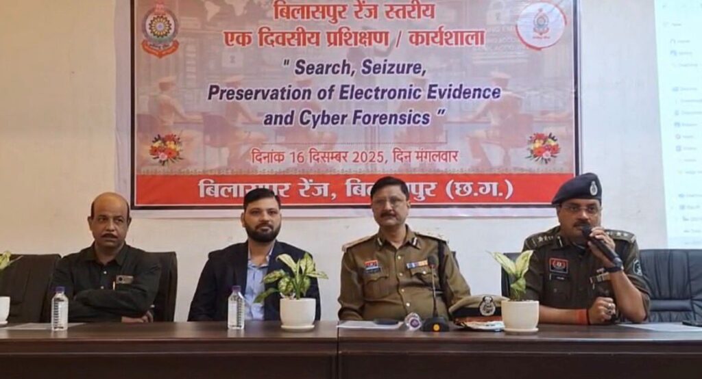 बिलासपुर। डिजिटल तकनीक के बढ़ते उपयोग के साथ अपराधों के स्वरूप में आए बदलाव को देखते हुए पुलिस विवेचना को अधिक वैज्ञानिक, सशक्त और परिणामोन्मुखी बनाने की दिशा में बिलासपुर पुलिस द्वारा एक अहम पहल की गई। Search, Seizure, Preservation of Electronic Evidence and Cyber Forensics विषय पर बिलासपुर जिले में एक दिवसीय रेंज स्तरीय कार्यशाला का आयोजन किया गया। इस कार्यशाला का उद्देश्य इलेक्ट्रॉनिक साक्ष्यों के विधिसम्मत संकलन, सुरक्षित संरक्षण और साइबर फॉरेंसिक तकनीकों के माध्यम से अपराधों में दोषसिद्धि की दर को बढ़ाना रहा।